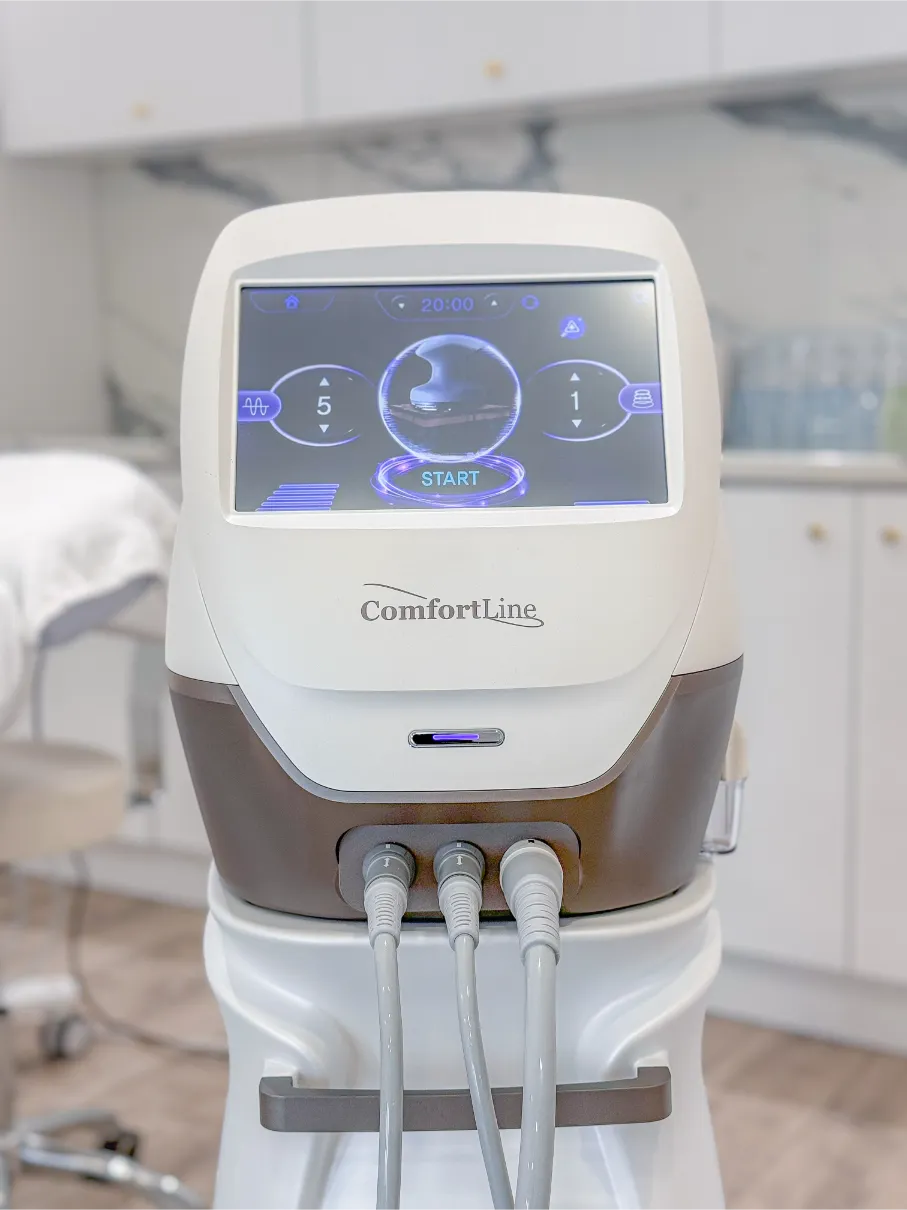 A Comfort Line készülékkel az arckezelés és az alaformálás területén is hihetetlenül látványos eredményeket érhetünk el. Az orvos esztétika területén bizonyítottan hatásos, hat különböző technológiát ötvöz egyetlen eszközben. A Multi-kavitációs kezelőfejben négy technológia szinergikus hatása elképesztően eredményes testkezeléseket biztosít (Multipoláris rádiófrekvencia, Soft-lézer, Kavitáció, LED fényterápia, Vákuum és Thermális RF). A nehezen elérhető testtájakon is segíthetjük a kollagén termelődést és a bőrfelszín károsítása nélkül stimuláljuk a sejtek működését. Testrészekre bontva, mindenkinek személyre szabva végezzük a kezeléseket. Bővebb információt a Gépek oldalon olvashatsz.